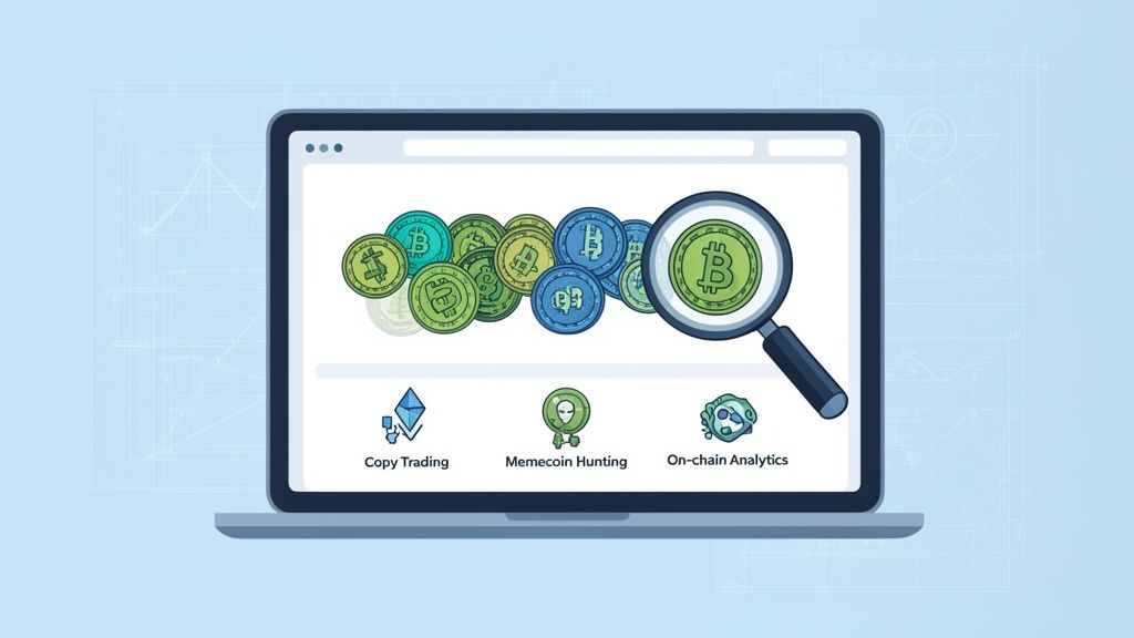 A powerful workflow involves using the scanner to identify wallets that consistently profit from low-cap memecoins, adding them to a watchlist, and setting up alerts to mirror their initial buys. If you're looking for more details on this strategy, the platform offers a guide on its coin finder app capabilities.